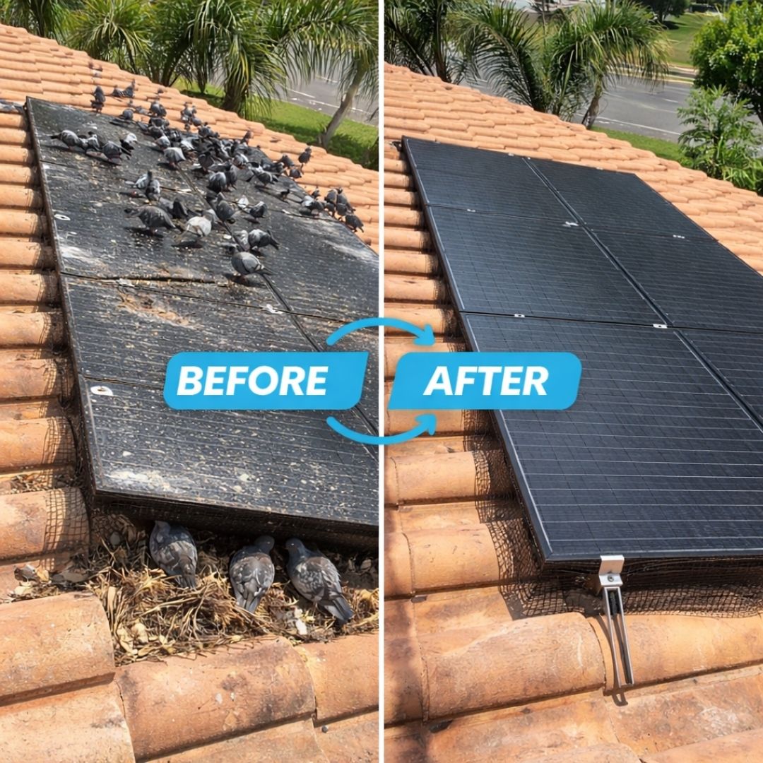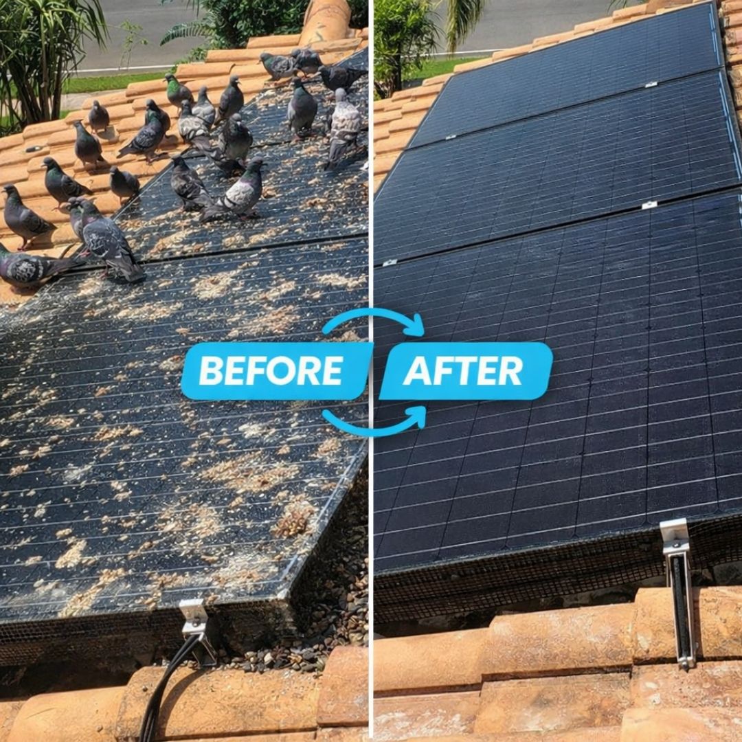Yes — we remove all nesting material, debris, and droppings from under your panels. This ensures a clean foundation before installing any proofing system.